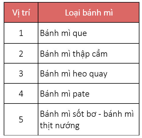 Top món bánh mì được đặt nhiều nhất trên GoFood (tính đến tháng 3-2020)