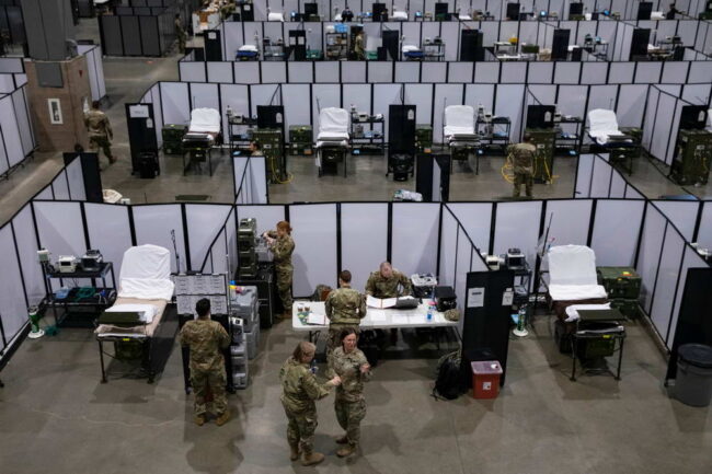 Một bệnh viện dã chién (makeshift hospital) do quân đội Mỹ lập tại trung tâm sự kiện ở CenturyLink Field thành phố Seattle (bang Washington). Ảnh chụp ngày 5-2-2020. (Ảnh: Ruth Fremson/The New York Times/ Internet. Thanks)