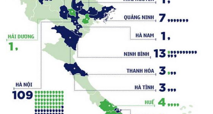 27 tỉnh thành có điều trị người nhiễm là Bạc Liêu (3 người), Bắc Giang (3), Bến Tre (1), Bình Thuận (9), Cần Thơ (2), Đà Nẵng (6), Đồng Nai (1), Đồng Tháp (4), Hà Nam (1), Hà Nội (109), Hà Tĩnh (3), Hải Dương (1), TP.HCM (54), Huế (4), Khánh Hòa (1), Lai Châu (1), Lào Cai (2), Ninh Bình (13), Ninh Thuận (2), Phú Thọ (1), Quảng Nam (3), Quảng Ninh (7), Tây Ninh (2), Thái Nguyên (1),Thanh Hóa (3), Trà Vinh (3), Vĩnh Phúc (11).