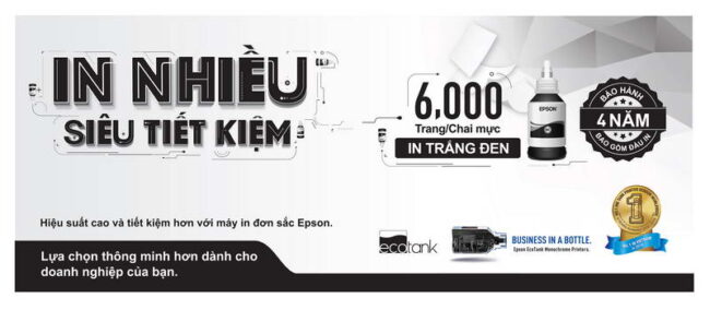 Epson Việt Nam cho biết: dòng máy in đơn sắc EcoTank hiện nay được cam kết bảo hành chính hãng với thời hạn 4 năm hoặc 50.000 trang in (tùy theo điều kiện nào đến trước).