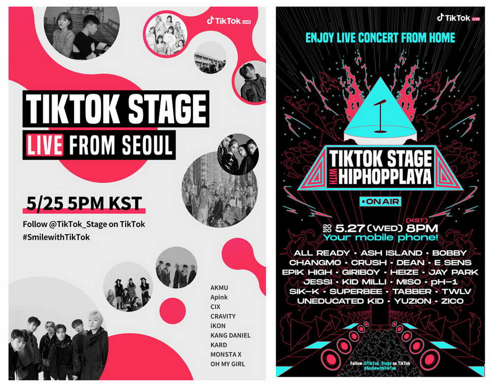 Tiếp tục các hoạt động gây quỹ hỗ trợ phòng chống đại dịch COVID-19, nền tảng video ngắn TikTok lần đầu tiên ra mắt hai buổi biểu diễn K-POP được phát trực tiếp dưới định dạng dọc. Buổi biểu diễn đầu tiên “Sân khấu TikTok – trực tiếp từ Seoul” được phát trực tiếp vào lúc 15g00 ngày 25-5-2020 và buổi tiếp theo “Sân khấu TikTok với HIPHOPPLAYA” lên sóng vào lúc 18g00 ngày 27-5-2020.