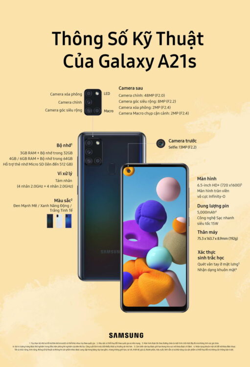 Thông tin chi tiết về Samsung Galaxy A21s.