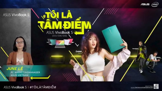 ASUS Việt Nam tối 18-6-2020 đã tổ chức sự kiện online launch ra mắt dòng laptop ASUS VivoBook S series mới 2020 trên thị trường Việt Nam. Sự kiện livestream này có chủ đề “Own The Spotlight – Tôi là tâm điểm”. Đây là dòng sán phẩm được thiết kế cho thế hệ Z là người dùng trẻ, năng động, yêu công nghệ và thời trang, làm hết mình, chơi hết ga.