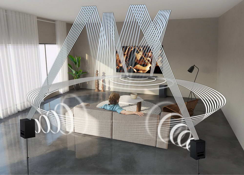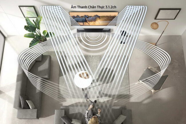 Với sự cộng hưởng của hệ thống âm thanh True Dolby Atmos & DTS/X, công nghệ độc quyền của Samsung là Acoustic Beam 2.0 và cấu hình loa tích hợp 9.1.4 kênh, dòng Q–Series 2020 gây ấn tượng mạnh mẽ với đường truyền âm thanh di chuyển xung quanh từ các hướng khác nhau, khiến người xem đắm chìm (Immersive Sound) trong từng chuyển động khung hình và cảm nhận được âm thanh vòm 3D sống động “chuẩn rạp chiếu phim”.