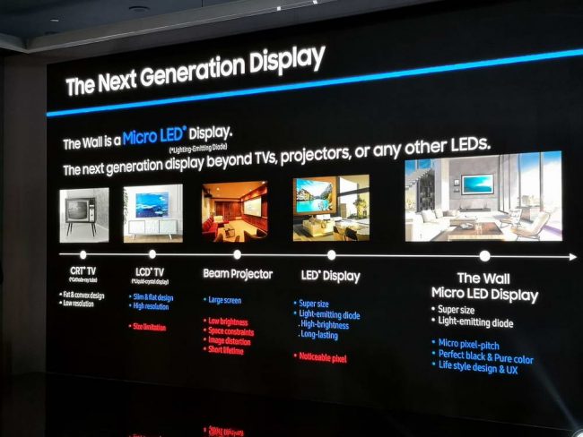 Chiều 26-6-2020, tại Samsung 68 Bitexco, Công ty Điện tử Samsung Vina ra mắt thị trường Việt Nam màn hình chuyên dụng The Wall phiên bản mới với hai tùy chọn: The Wall cho Doanh nghiệp và The Wall cho Phong cách sống sang trọng. Cả hai phiên bản đều sử dụng công nghệ tấm nền màn hình phẳng (MicroLED) dạng mô-đun, với nhiều nâng cấp về chất lượng hình ảnh và là minh chứng cho tinh thần luôn thúc đẩy những đột phá công nghệ tại Samsung. Công nghệ mô-đun cho phép người dùng có thể lắp ghép và sáng tạo ra những thiết kế màn với kích thước hiển thị khác nhau từ 73 inch lên đến 583 inch để đáp ứng nhu cầu đa dạng của họ.