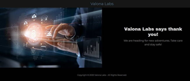 Trang chủ website của Velona Labs vào ngày 6-7-2020 hiển thị thông báo cho biết họ đang hướng tới một những cuộc phiêu lưu mới.