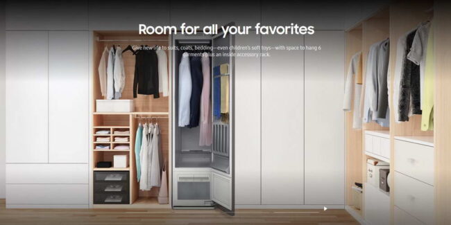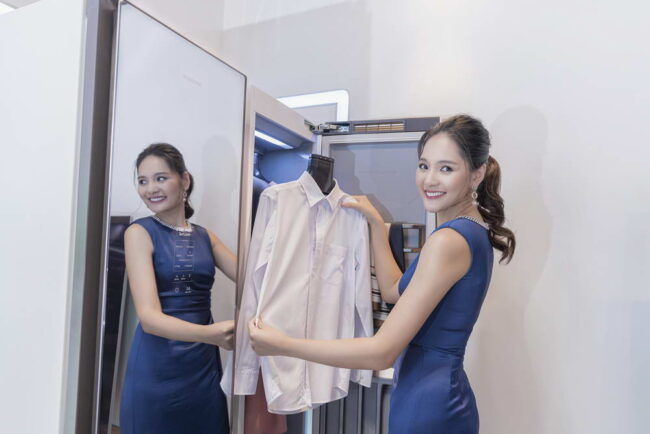 Công ty Điện tử Samsung Vina đã giới thiệu một sản phẩm hoàn toàn mới trong danh mục ngành hàng thiết bị điện tử gia dụng tại thị trường Việt Nam: tủ chăm sóc quần áo thông minh Samsung AirDresser. Sản phẩm này nằm trong bộ sưu tập hàng điện máy gia dụng cao cấp (Samsung Elite Collection) được Samsung ra mắt thị trường Việt Nam hồi đầu tháng 8-2020. Tiếp nối các sản phẩm ứng dụng sáng tạo tiên tiến được hỗ trợ bởi trí tuệ nhân tạo (AI) trong chăm sóc gia đình, thiết bị AirDresser sử dụng công nghệ hơi nước và không khí để chăm sóc quần áo với 4 bước trong 1 thiết bị: làm sạch bụi bẩn; hấp hơi diệt khuẩn, sấy dịu nhẹ đến khử mùi toàn diện giúp người dùng chăm sóc trang phục tốt nhất có thể được tại nhà.