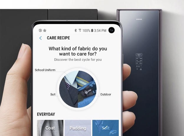 Kết nối thông minh với ứng dụng SmartThings, Samsung AirDresser cho phép người dùng quản lý và chăm sóc mọi loại áo quần từ xa mọi lúc mọi nơi. Chức năng My Closet giúp lưu trữ thông tin về quần áo, hỗ trợ phân tích dữ liệu sử dụng, gợi ý các chế độ chăm sóc phù hợp nhất; và Chức năng Home Care Wizard giúp xác định từ xa các vấn đề gặp phải và cung cấp giải pháp khắc phục.