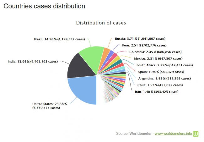 | World | 28,025,181 | +10,333 | 908,000 | +696 | 20,103,385 | 7,013,796 | 60,538 | 3,595 | 116.5 | ||||