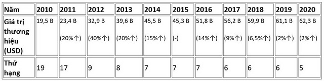 Sự tăng trưởng về giá trị thương hiệu của Công ty Điện tử Samsung: