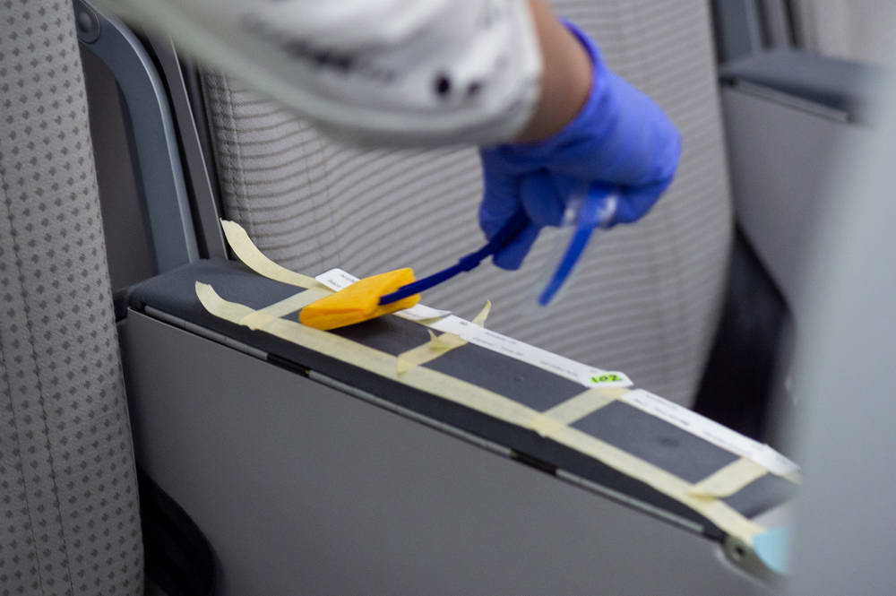 Cuộc thử nghiệm đã đặt virus MS2 vào các điểm mà hành khách và phi hành đoàn thường xuyên tiếp xúc trong khoang máy bay, bao gồm trên bàn ăn, tựa tay, đệm ngồi, hộc hành lý và trong phòng vệ sinh, phòng bếp. Các kỹ thuật viên đã khử trùng mỗi khu vực bằng các sản phẩm và công nghệ khác nhau. Các chất khử trùng hóa học được sử dụng theo hai cách: bằng tay và bằng bình phun tĩnh điện, loại thiết bị phun ra một chất khử trùng dạng lỏng đã được kiểm chứng. Thử nghiệm cũng đánh giá tính hiệu quả của đèn cực tím (ultraviolet wand) do Boeing phát triển và các lớp phủ kháng khuẩn (antimicrobial coatings). Các chất kháng khuẩn (antimicrobials) là các lớp phủ tồn tại lâu giúp tiêu diệt vi trùng và virus trên bề mặt.