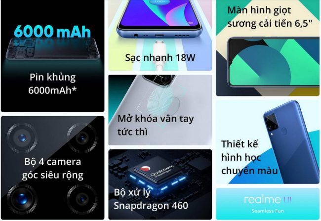 Pin 6.000mAh – sạc nhanh 18W, RAM 4GB + ROM 64GB