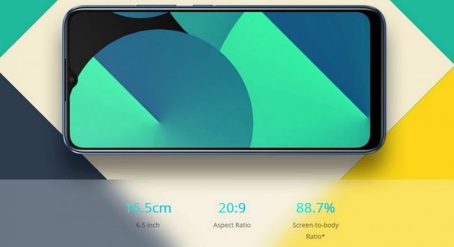 | Màn hình | IPS 6.5 inch; 81.7% screen-to-body ratio; màn hình tràn viền giọt sương mini-drop (notch nhỏ ở giữa mép trên cho camera selfie); HD+ (720 x 1600 pixel), tỷ lệ hiển thị 20:9. Kính cường lực Corning Gorilla Glass. |