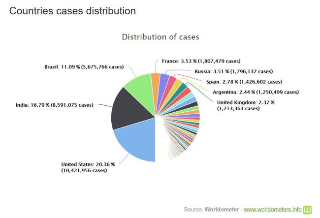 | 13 | South Africa | 738,525 | 19,845 | 680,726 | 37,954 | 546 | 12,396 | 333 | 4,993,081 | 83,811 | 59,575,644 | ||