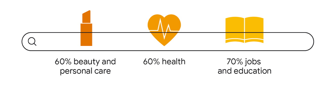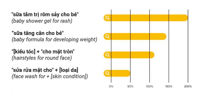 Ngoài ra, người tiêu dùng Việt Nam đang đặt ra nhiều câu hỏi được cá nhân hóa hơn. Nhóm tác giả báo cáo của Google nhận thấy sự gia tăng ổn định về các sở thích Tìm kiếm dành riêng cho nhu cầu và mong muốn của từng người tiêu dùng. Hành trình của người tiêu dùng Việt Nam cũng đang dịch chuyển nhiều hơn trên các phương tiện online và offline vì 75% giao dịch mua hàng được thực hiện offline, nhưng 62% nghiên cứu về các giao dịch mua này được thực hiện online.