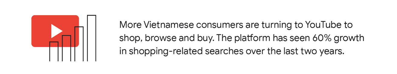 Khi người tiêu dùng Việt Nam ngày càng tích hợp các dịch vụ kỹ thuật số vào cuộc sống hàng ngày của mình, Google nhận thấy họ đang khám phá nhiều kênh và lựa chọn khác nhau trên hành trình mua hàng của họ. Hành trình mua hàng đã phát triển đáng kể do COVID-19 và truy cập Internet tăng, và 83% người Việt Nam hiện dành nhiều thời gian hơn để nghiên cứu sản phẩm trực tuyến trước khi mua hàng. Ra quyết định trực tuyến (online decision-making) và mua hàng ngoại tuyến (offline purchase) là hành vi chủ đạo trên các danh mục chính.