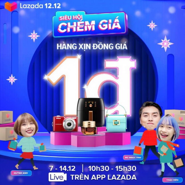 - Từ ngày 7-12 tới 14-12, khách hàng có thể săn ngay các sản phẩm chất lượng với giá rẻ nhất và duy nhất khi xem livestream Siêu hội Chém giá trên ứng dụng Lazada.