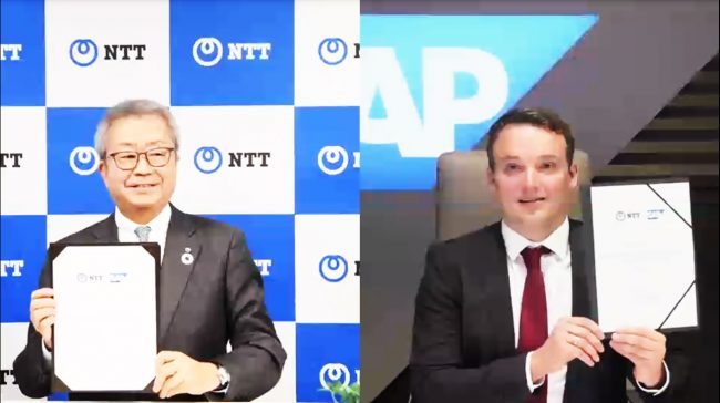 Tập đoàn giải pháp doanh nghiệp – công nghệ NTT (Nhật Bản) và Tập đoàn phần mềm SAP SE (Đức) ngày 7-12-2020 đã công bố việc thành lập liên minh chiến lược nhằm xây dựng mối quan hệ đối tác toàn diện, trong đó cả hai tập đoàn sẽ trở thành khách hàng, nhà cung cấp và đối tác sáng tạo của nhau. Do ảnh hưởng bởi đại dịch COVID0-19 toàn cầu, sự kiện công bố này diễn ra dưới hình thức online từ trụ sở chính của NTT tại Tokyo và của SAP tại Walldorf.