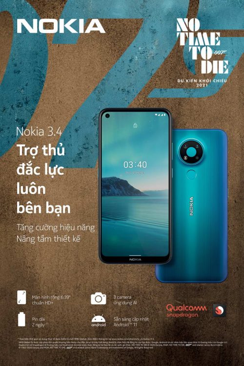 HMD Global Oy, công ty sở hữu độc quyền thương hiệu Nokia cho điện thoại và máy tính bảng, ngày 7-12-2020 đã ra mắt thị trường Việt Nam dòng smartphone Nokia 3.4 tích hợp hiệu năng mạnh mẽ cùng những điểm nhấn nổi bật về nhiếp ảnh di động với bộ 3 camera AI.