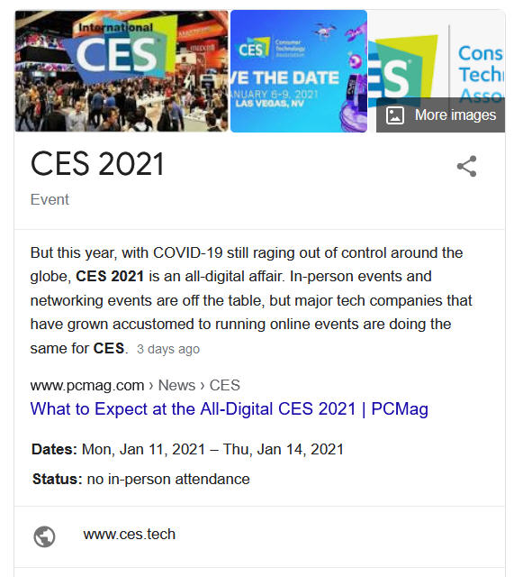 Hội chợ triển lãm công nghệ điện tử tiêu dùng thường niên lớn nhất thế giới CES 2021 do Hiệp hội Công nghệ Tiêu dùng (Consumer Technology Association, CTA) Mỹ tổ chức khai mạc ngày 11-1-2021 và kéo dài tới ngày 14-1-2021. Chỉ có điều, do đại dịch COVID-19 đang hoành hành toàn cầu, đặc biệt nghiêm trọng là ngay chính nước Mỹ, năm nay, CES vốn tổ chức offline suốt 53 năm qua (sau này chủ yếu tại Las Vegas, bang Nevada) đã phải lần đầu tiên tổ chức online, hoàn toàn trên không gian mạng – không có người tham dự (no in-person attendance). Nó được gọi là All-Digital CES 2021.