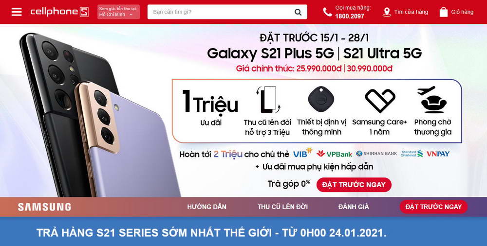 Chương trình đặt trước dòng Galaxy S21 series ở Việt Nam đã được công bố ngay lập tức sau sự kiện Galaxy Unpacked 14-1-2021 chứ không phải chờ tới ngày ra mắt tại Việt Nam như trước (thường sớm nhất là một tuần).