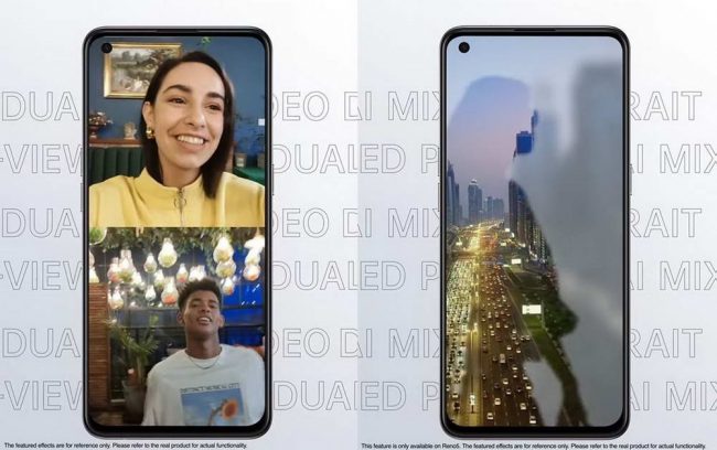 Tính năng Video hiển thị kép (Dual View Video) – bên trái – và tính năng Video phơi sáng kép (AI Mixed Portrait) trên OPPO Reno5.