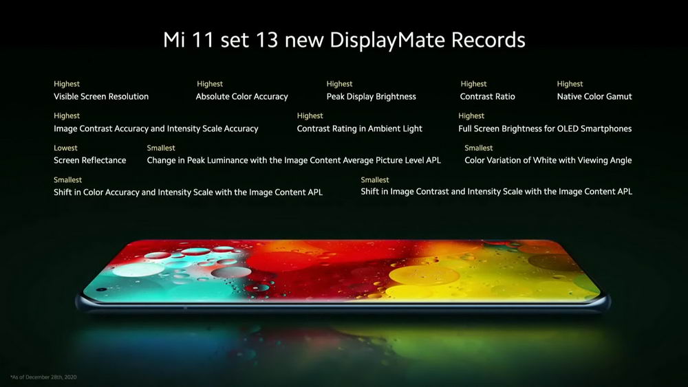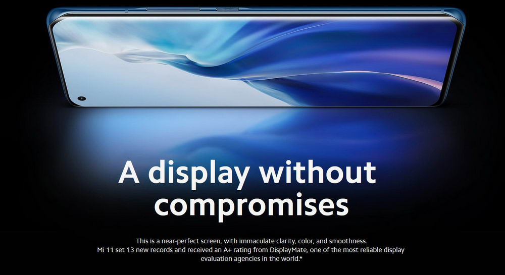 Với màn hình AMOLED DotDisplay 120Hz 6.81 inch, Xioami Mi 11 có một trong những màn hình tốt nhất trên thị trường đã nhận được xếp hạng A+ cũng như giải thưởng màn hình tốt nhất từ DisplayMate (tổ chức đánh giá màn hình chuyên nghiệp hàng đầu thế giới).