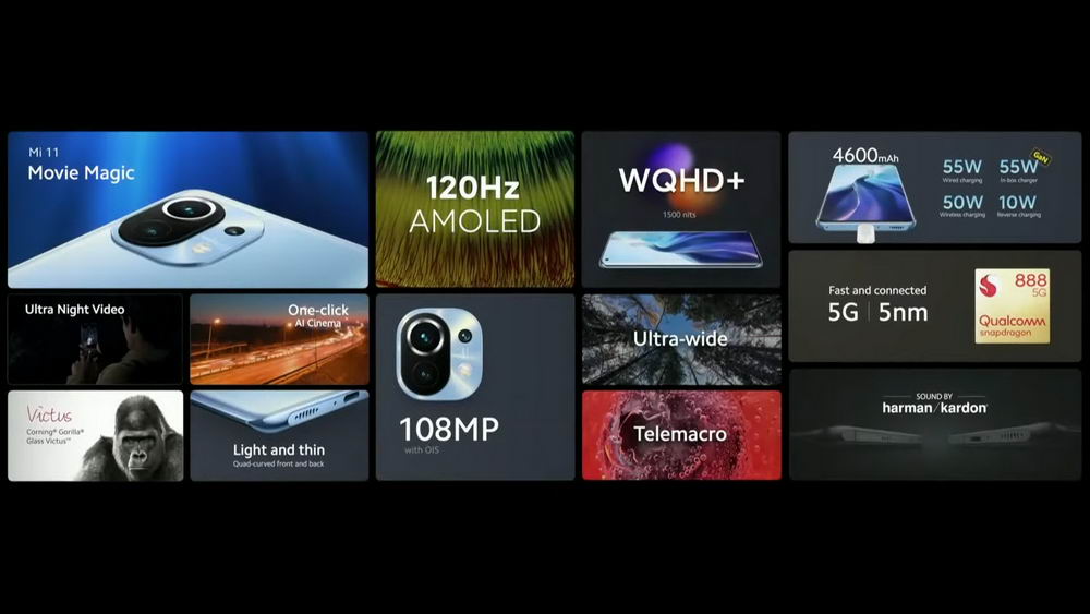 Tại sự kiện ra mắt toàn cầu tối 8-2-2021, Tập đoàn công nghệ toàn cầu Xiaomi đã giới thiệu Mi 11, chiếc flagship mới nhất trong dòng smartphone cao cấp Mi. Là thiết bị cao cấp, Mi 11 mang lại nhiều cải tiến đột phá so với các thế hệ trước, như vi xử lý cao cấp nhất hiện nay Qualcomm Snapdragon 888, cụm 3 camera sau độ phân giải cao lên đến 108MP, màn hình AMOLED 120Hz, trải nghiệm âm thanh Harman Kardon sống động và sạc có dây 55W, sạc không dây 50W.