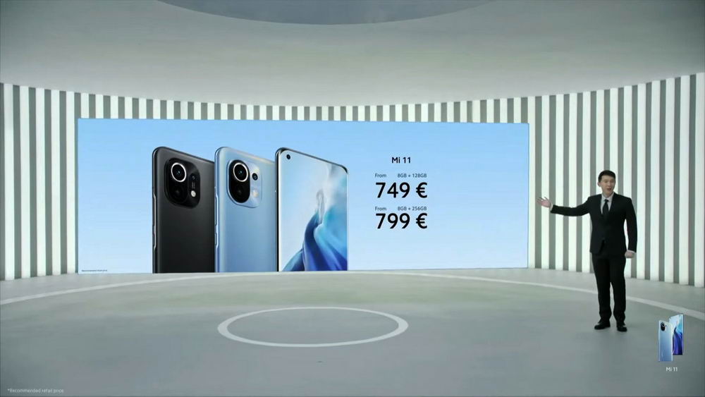 - Xiaomi Mi 11 có giá bán quốc tế từ 749 EUR (cho phiên bản RAM 8GB + ROM 128GB) và từ 799 EUR (RAM 8GB + ROM 256GB). Có bán trên các sàn thương mại điện tử và các hệ thống bán lẻ trên thế giới.