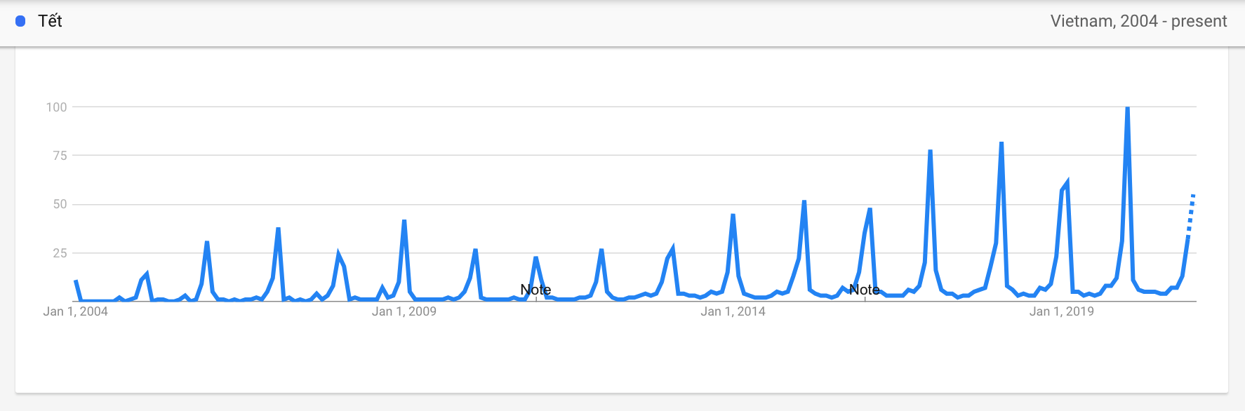 Tuy vậy, Tết vẫn là một trong những dịp lễ truyền thống quan trọng nhất, được người Việt chú trọng nhất. Trong bốn tuần cận Tết, chủ đề Tết luôn nằm trong top các xu hướng tìm kiếm hàng đầu tại Việt Nam, với tỷ lệ tìm kiếm tăng hơn 125% và vẫn đang trên đà tăng.
