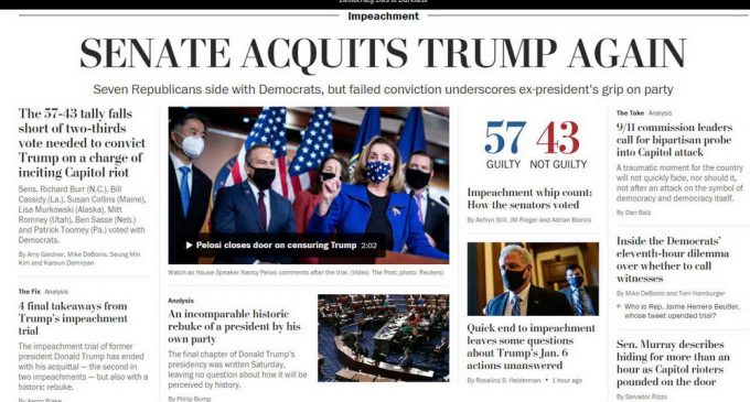 Mọi nỗ lực tới mức tận lực của phe Dân chủ trên chính trường Mỹ, do “nữ lão tướng” 80 xuân xanh Nancy Pelosi, Chủ tịch Hạ viện, phất cờ tiên phuông, trong cuộc luận tội (impeachment) lịch sử lần thứ 2 chống lại cựu Tổng thống Mỹ Donald Trump một lần nữa đã bị chặn lại tại Thượng viện.