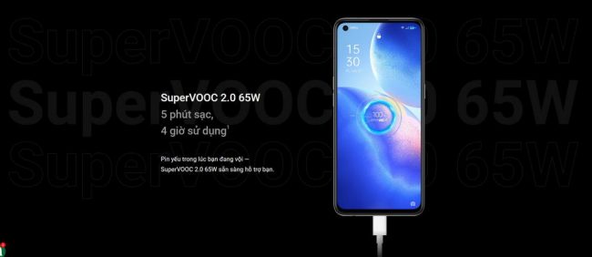 Smartphone OPPO Reno5 5G được trang bị công nghệ sạc siêu nhanh SuperVOOC 2.0.