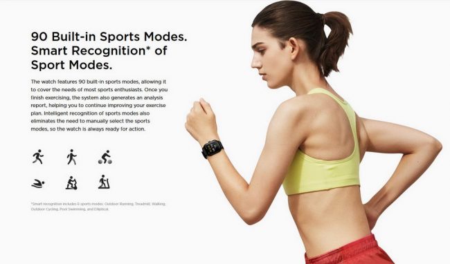 Amazfit GTS 2e được tích hợp hơn 90 chế độ thể thao như chạy bộ, đạp xe, bơi lội… và các môn thể thao trong nhà và ngoài trời phổ biến nhất. Với chức năng nhận dạng thông minh, thiết bị sẽ tự động kích hoạt tính năng theo dõi hoạt động thể chất khi bạn bắt đầu tập luyện. Hệ thống cũng tạo báo cáo phân tích khi bạn hoàn thành mục tiêu đã đặt ra.