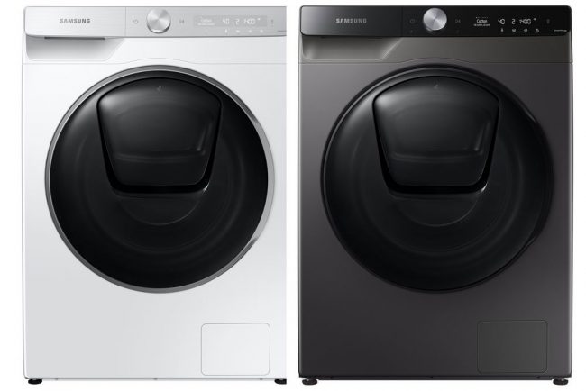 Máy giặt sấy Samsung AI WD95T754DBX-SV (bên phải) và máy giặt Samsung AI WW90TP54DSH-SV.