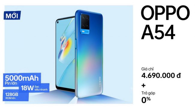 OPPO ngày 16-4-2021 đã ra mắt A54, smartphone mới nhất thuộc dòng A series, với người dùng ở Việt Nam, tăng thêm sự lựa chọn hơn cho người dùng trong phân khúc smartphone giá dưới 5 triệu đồng.