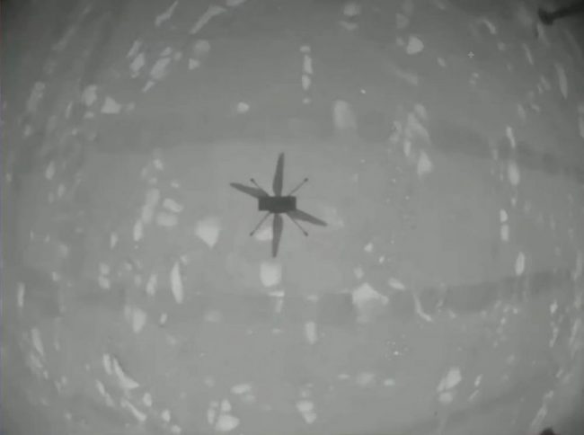 Chiếc trực thăng Ingenuity helicopter không người lái của Cơ quan Hàng không và Không gian Hoa Kỳ (NASA) sáng thứ Hai 19-4-2021 đã thực hiện phi vụ đầu tiên trên Sao Hỏa. Đây cũng là chuyến bay của máy bay không người lái không gian (space drone) đầu tiên trong lịch sử và chứng minh rằng việc thám hiểm trên không là có thể thực hiện được trên các hành tinh khác.