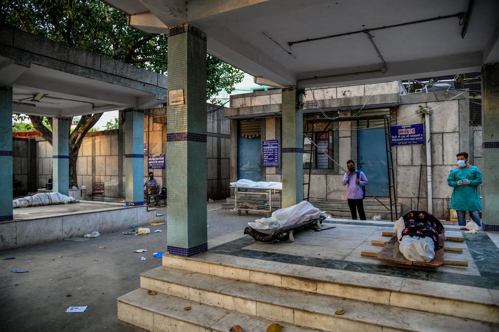 Những người thân này đang khóc than bên ngoài nhà xác một bệnh viện tại thủ đô New Dehli ngày 23-4-2021.