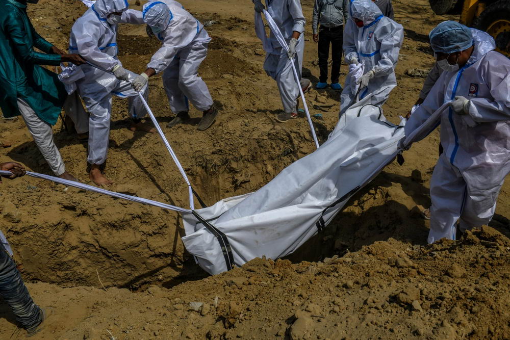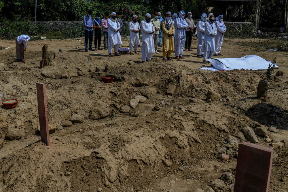 Mai táng một bệnh nhân chết vì COVID-19 tại New Delhi.