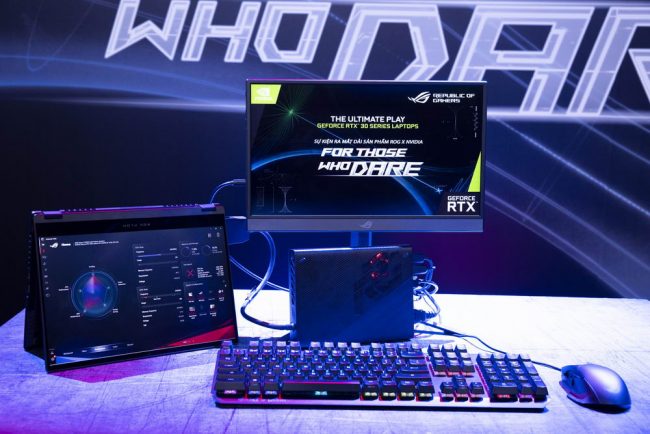 Thương hiệu thiết bị gaming ASUS Republic of Gamers (ROG) tại sự kiện online FOR THOSE WHO DARE – The Ultimate Play tối 21-5-2021 đã giới thiệu dải sản phẩm laptop chơi game sử dụng đồ họa NVIDIA GeForce RTX 30 series cho laptop mới nhất. ROG nói rằng dải sản phẩm toàn diện mới nhất này mang đến trải nghiệm chưa từng có cho game thủ, nhà sáng tạo và người chơi máy tính.