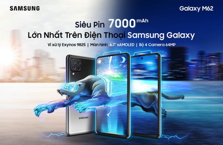 Công ty điện tử Samsung Vina ngày 24-5-2021 đã giới thiệu smartphone Samsung Galaxy M62 thuộc dòng Galaxy M tập trung về hiệu năng cho giới trẻ. Galaxy M62 được … Continue reading Samsung Galaxy M62 với siêu pin 7.000mAh lớn nhất trên điện thoại Galaxy
