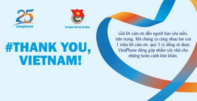 Ngày 27-5-2021, Trung ương Đoàn TNCS Hồ Chí Minh và nhà mạng VinaPhone đã họp báo công bố và phát động chiến dịch cùng nhau lan tỏa triệu lời cảm ơn kèm hashtag #ThankyouVN_TWDoan_VinaPhone. Thông qua chiến dịch này, VinaPhone sẽ đóng góp 5 tỷ đồng để xây dựng 60 căn nhà nhân ái cho các gia đình có hoàn cảnh khó khăn.