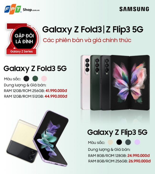 Vào 18-8, Samsung Việt Nam đã công bố giá bán chính thức của Galaxy Z Fold3 5G và Flip3 5G. Cụ thể: