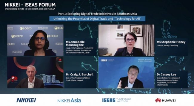 Được tổ chức bởi Tập đoàn Nikkei và Viên Nghiên cứu Đông Nam Á ISEAS – Yusof Ishak Institute, Diễn đàn Nikkei-ISEAS về thương mại kỹ thuật số (digital trade) ở Đông Nam Á và Khối ASEAN tập hợp các nhà lãnh đạo trong khu vực bao gồm Bộ Điều phối các Vấn đề Kinh tế Indonesia, Tổ chức Hợp tác và Phát triển Kinh tế (OECD), ISEAS, Công ty tư vấn Honey và Huawei để khám phá các sáng kiến nhằm mở khóa tiềm năng của thương mại kỹ thuật số trong khu vực. Sự cần thiết cho hệ sinh thái (ecosystem) thương mại kỹ thuật số kết nối, toàn diện và đa phương đã được nhấn mạnh trong cuộc thảo luận này.