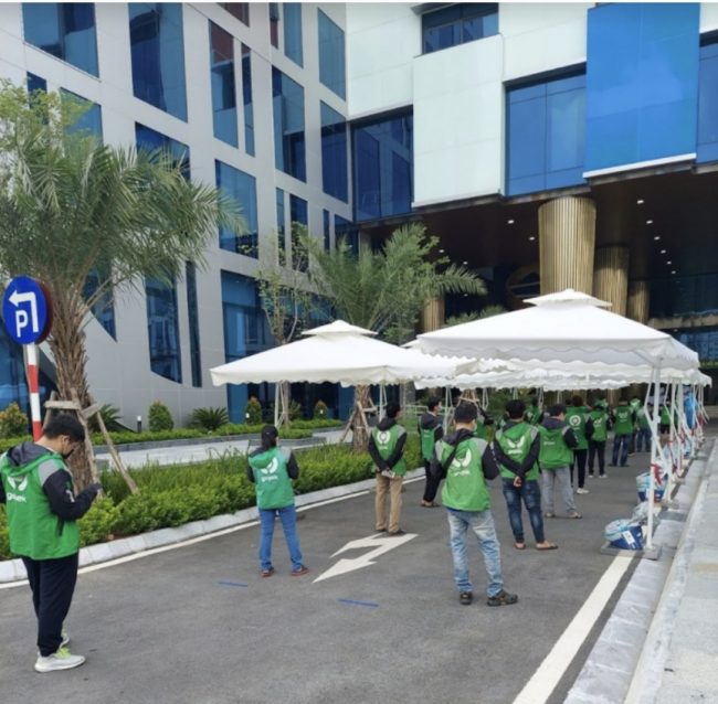 Các đối tác tài xế của Gojek tại Hà Nội được tiêm vaccine ngừa COVID-19 ngày 30-8-2021.