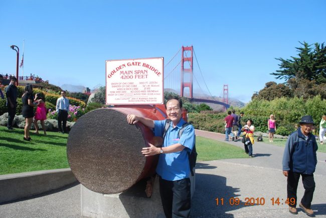 Tác giả tại khu vực Golden Gate (San Francisco) ngày 11-9-2010. Ở góc trên bên trái là cờ rũ,