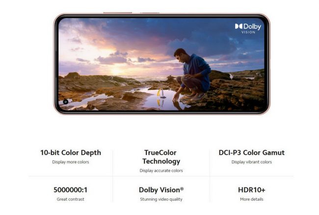 Màn hình AMOLED 6.55 inch FHD+ có tốc độ làm tươi 90Hz hỗ trợ TrueColor 10-bit và Dolby Vision.
