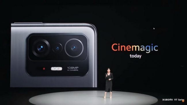 Cụm ba camera của Xiaomi 11T với camera chính có độ phân giải cao 108MP, camera góc siêu rộng 120° và camera telephone 2x. Bộ ba camera này được tích hợp chế độ Cinema AI với các thủ thuật của các nhà quay phim chuyên nghiệp được thực hiện trên thiết bị chỉ với một cú click. Các thủ thuật có thể kể đến như Time Freeze (chế độ Đóng băng thời gian), Magic Zoom (chế độ Thu phóng chuyên nghiệp) và các loại cảnh quay phức tạp khác; đồng thời, âm thanh dù nhỏ nhất cũng có thể được thu lại rõ ràng với chế độ Audio Zoom (Thu phóng Âm thanh) chuyên dùng cho phim điện ảnh.