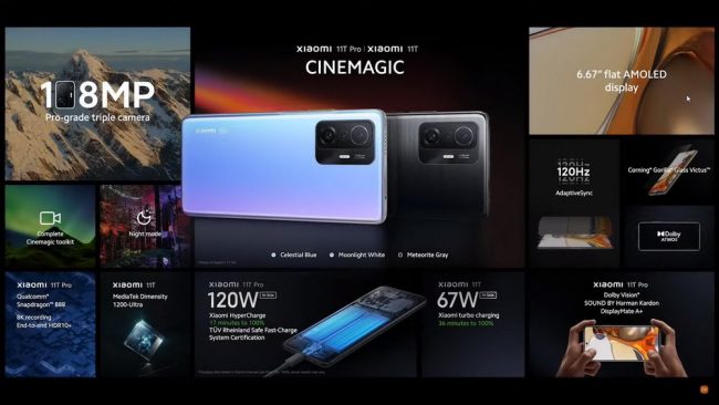Với Xiaomi 11T và Xiaomi 11T Pro, Xiaomi tiếp tục mang đến một sự đột phá mới về khả năng quay phim và nhiếp ảnh trên điện thoại với các tính năng giúp sáng tạo nên những “thước phim ma thuật”. Với các sản phẩm của dòng Xiaomi 11T, những công nghệ quay phim hàng đầu giờ đây nằm gọn trong lòng bàn tay của những nhà sáng tạo tài năng và luôn đầy ắp ý tưởng. Trong khi đó, Xiaomi 11 Lite 5G NE với thiết kế nhẹ, siêu mỏng có vẻ ngoài thời thượng đi cùng các tính năng tiên tiến.