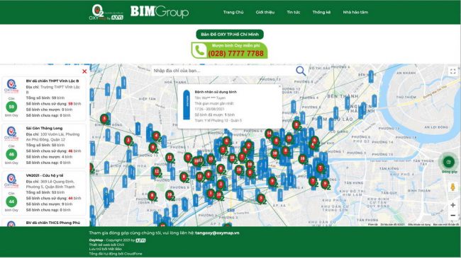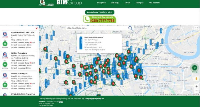 Ngoài ra, hệ thống có thể vẽ lại bản đồ sử dụng và cung câp oxy miễn phí của toàn thành phố tại website oxymap.vn
