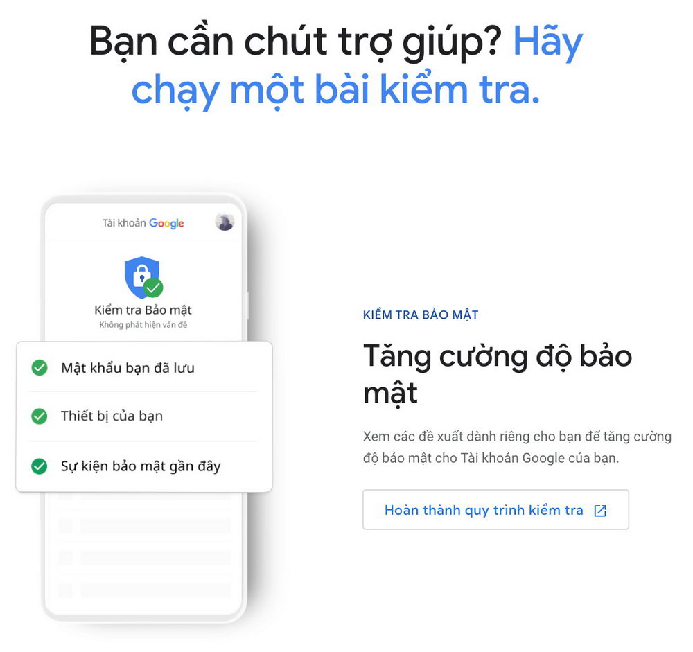 Ngay từ bây giờ, mọi người có thể truy cập vào địa chỉ safety.google/intl/vi_vn và thực hiện bước đầu tiên để kiểm tra độ bảo mật của tài khoản hiện tại và cách thiết lập chúng trở nên an toàn hơn với bước Kiểm tra bảo mật.
